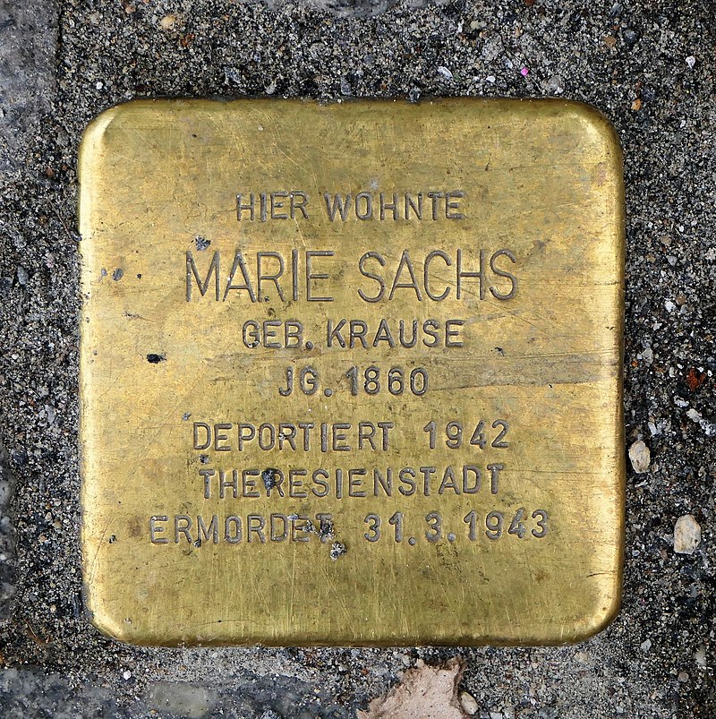 Im Anschluß wurde vor dem Eingang Elbstr. 26 ein Stolperstein für Marie Auguste Sachs verlegt, die mit über 80 Jahren nach Theresienstadt deportiert und dort ermordet wurde. Familie Sachs hatte sich seit 1883 für Meißen verdient gemacht. Für die noch zu erforschenden weiteren Familienmitglieder sollen nach Maßgabe des Künstlers an beiden Stellen zusätzlich jeweils 2 Platzhaltersteine verlegt werden, die dann 2018 durch die Verlegung eines eigenen Stolpersteines ersetzt werden sollen.